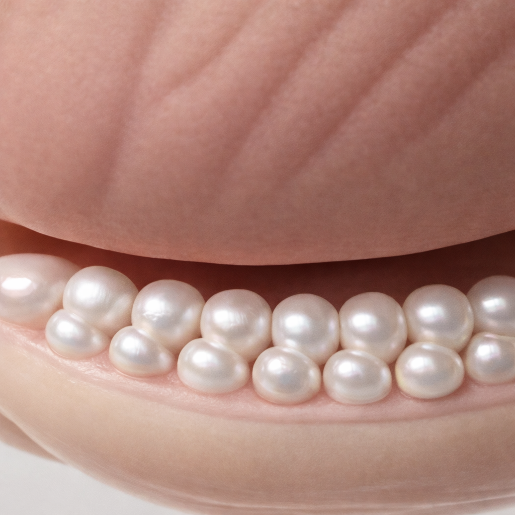 Small, smooth, dome-shaped bumps arranged in neat rows around the rim of the glans.